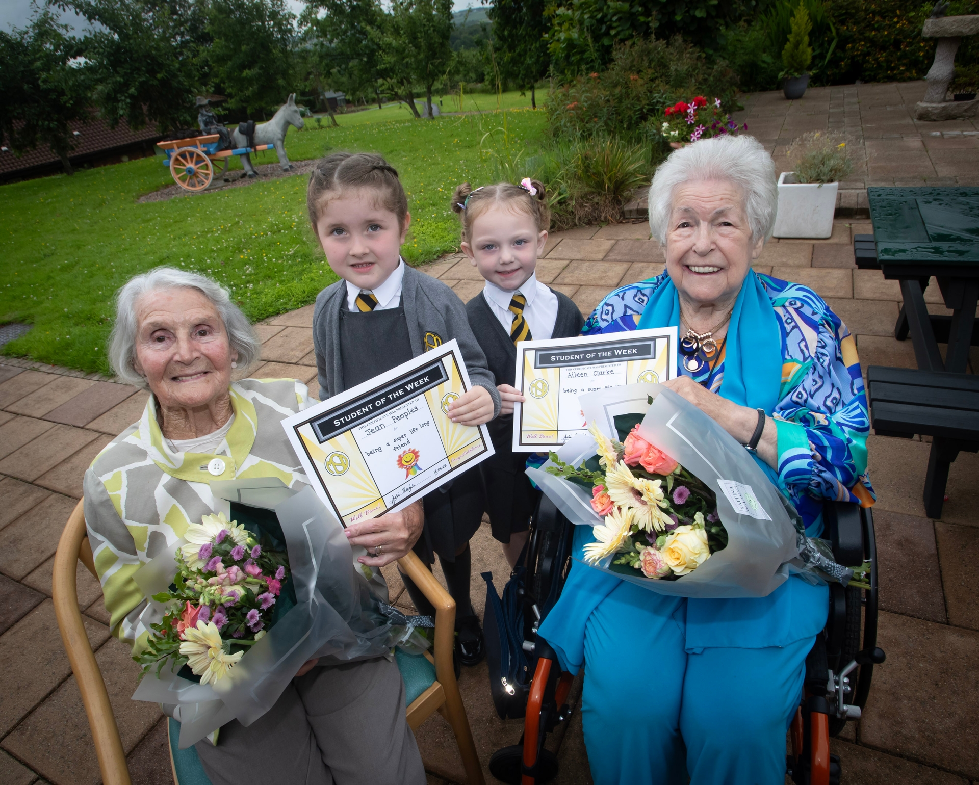 The two young P1 pupils serving Jean and Aileen with their Model PS certificates.