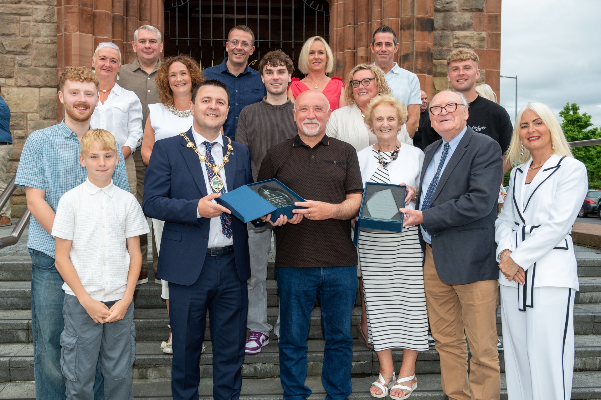 Pictured at the event are Pádraig Ó Mianáin with his wife Bernadette and parents Colette and Paddy with his children and family members, Oisin, Caoilte, Caoimhe, Sean, Duailtin, Joe, Marcus,, Siuinin, Eadaoin, Ed and Naoise.