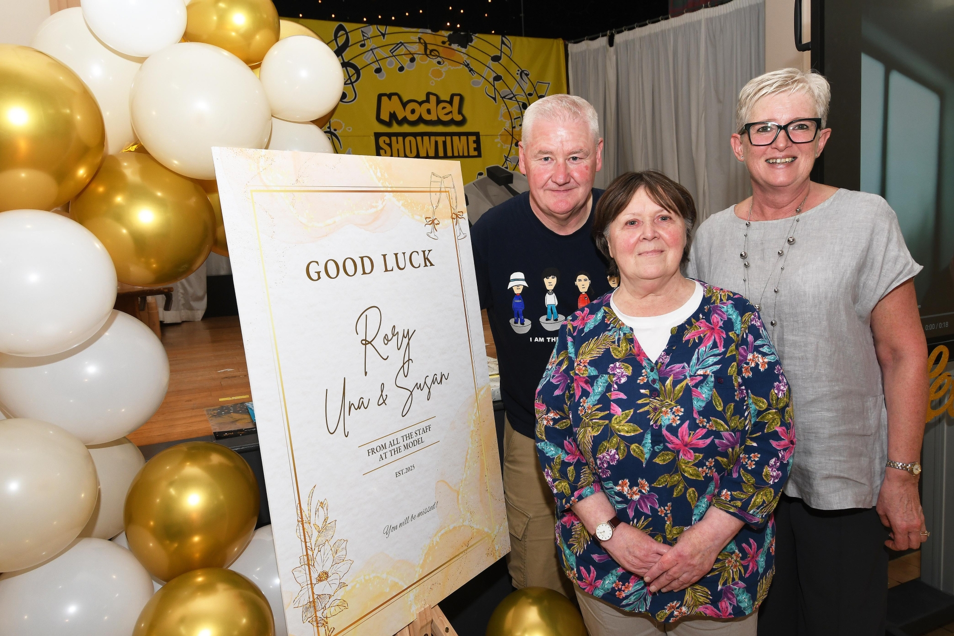 Retiring long-standing staff members at the Model Primary School - Rory Morrisson, 27 years service, Una McCool, 32 years, and Susan Devenney, 23 years, pictured at a retirement party held at the school.