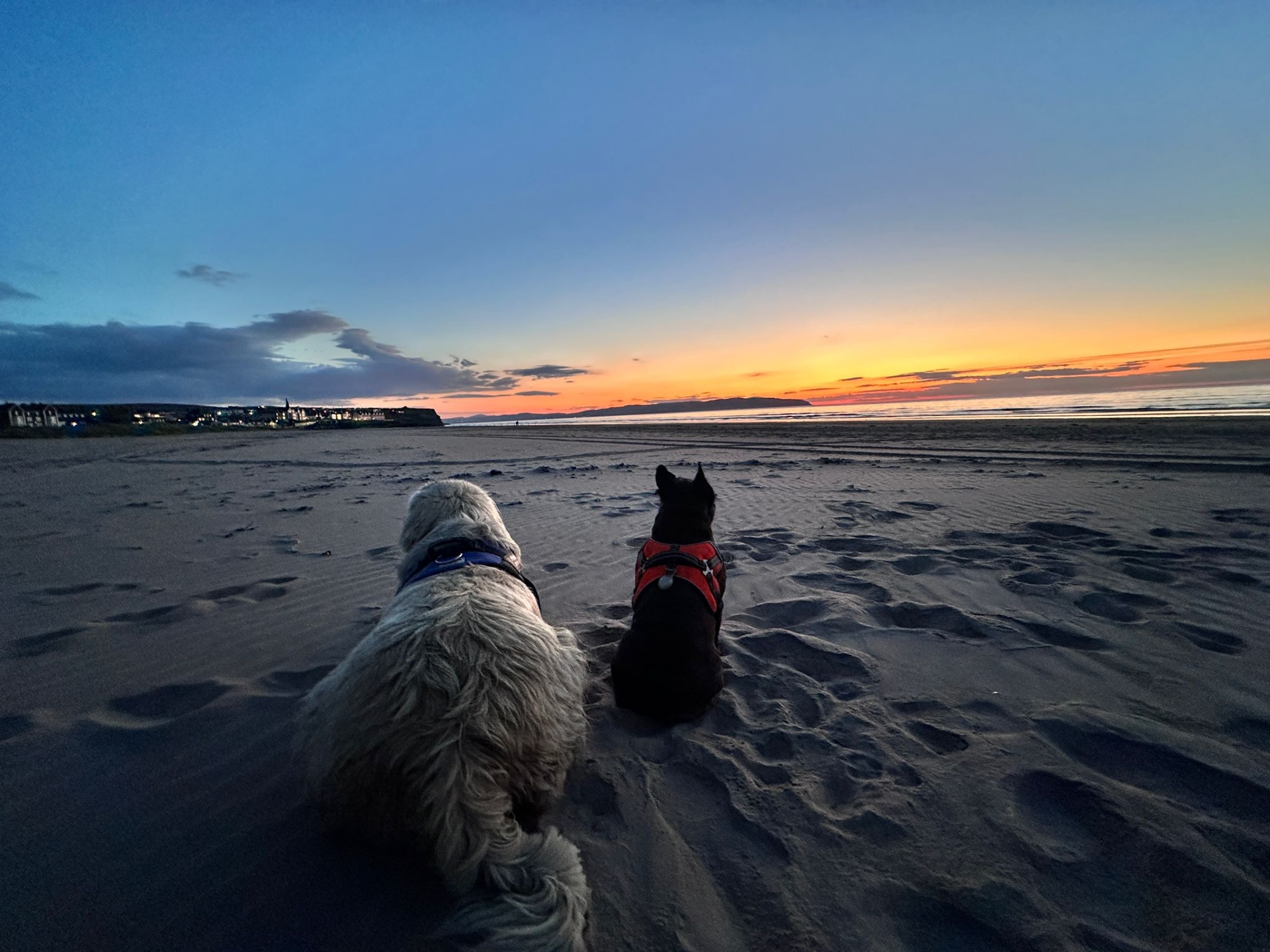 This photo was submitted by Kevin Reilly featuring Frank and Louie as they enjoy the sunset on Castlerock Beach.