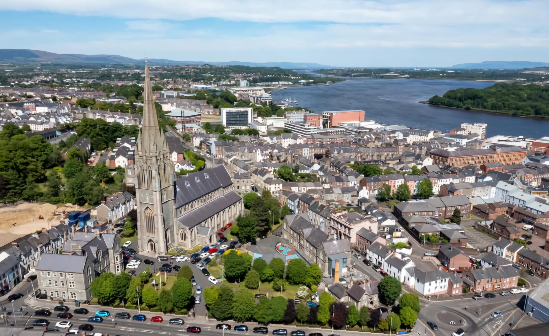 A stunning aerial view of St Eugene's Cathedral with the River Foyle and Donegal in the distance submitted by reader Frankie Stewart.