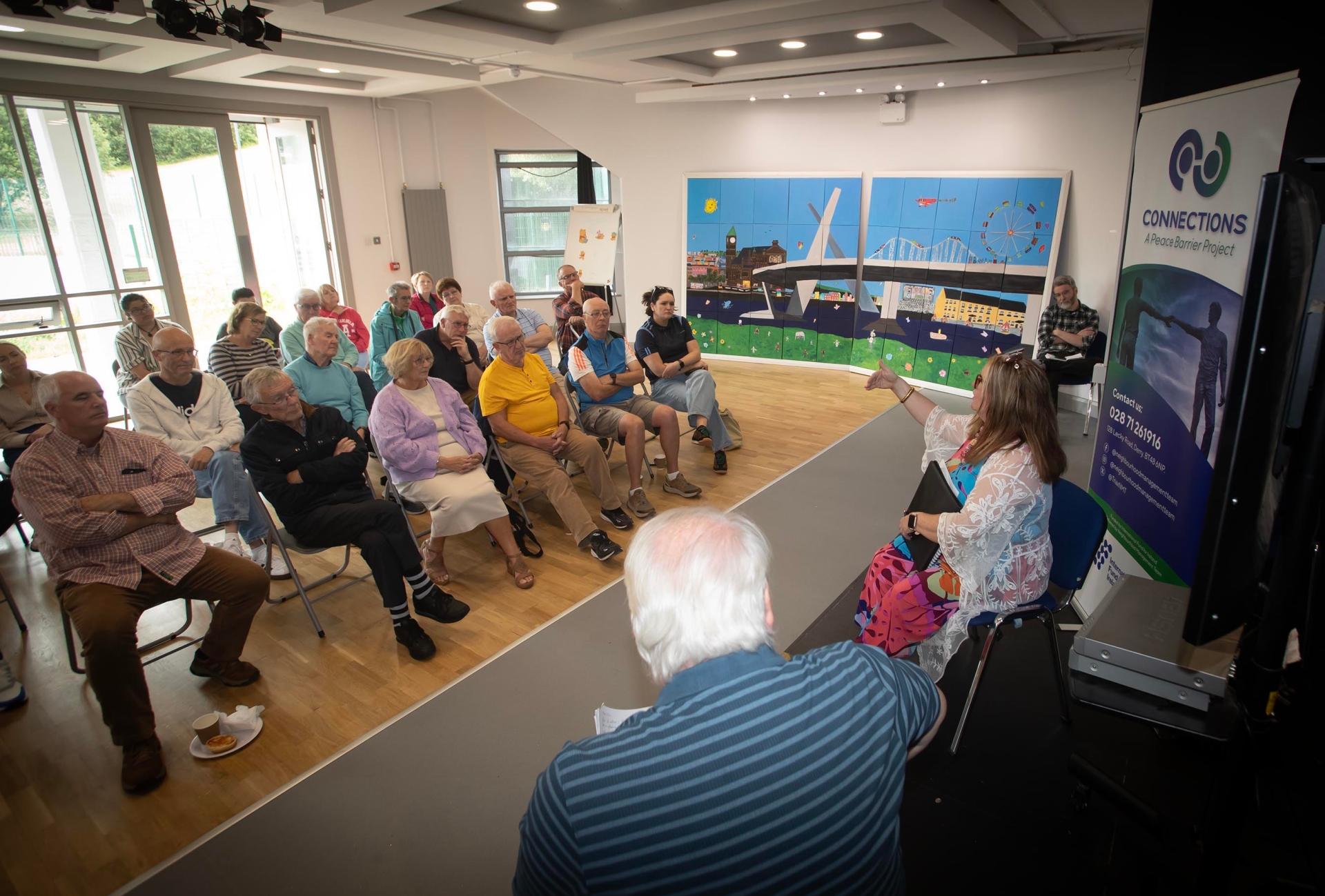 Maeve McLaughlin, Director, Bloody Sunday Trust, answers an audience question during the recent 'Mythbusting Conversation Series' at the Gasyard.