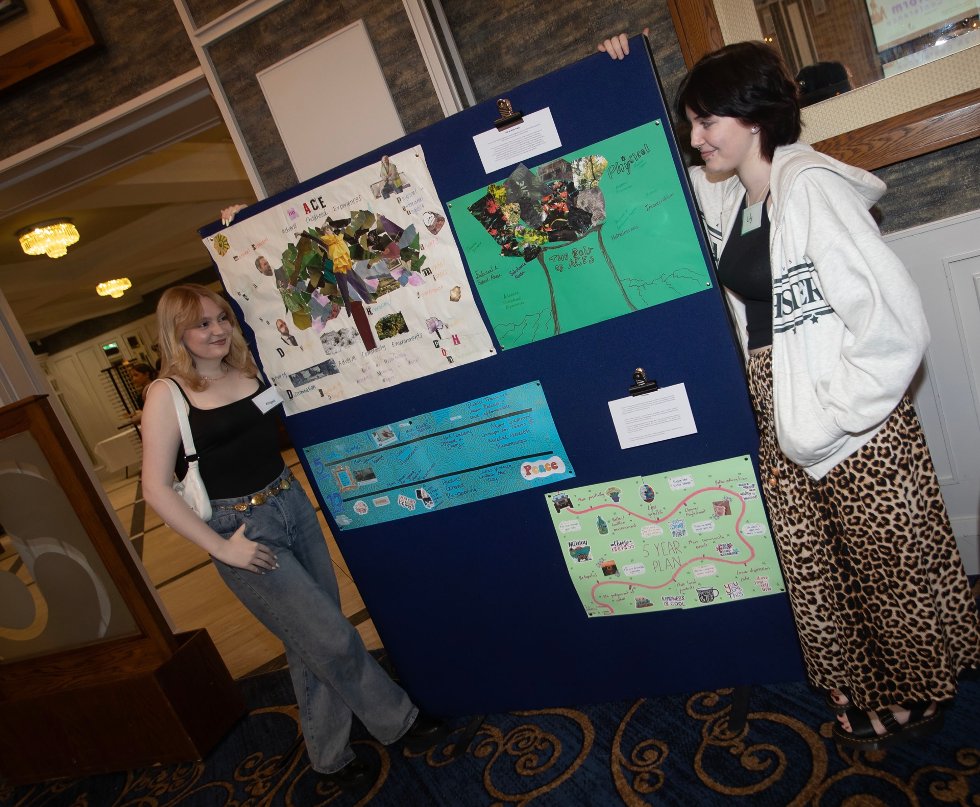 Annie Bonner and Lillie McCauley showing off some of their artwork.
