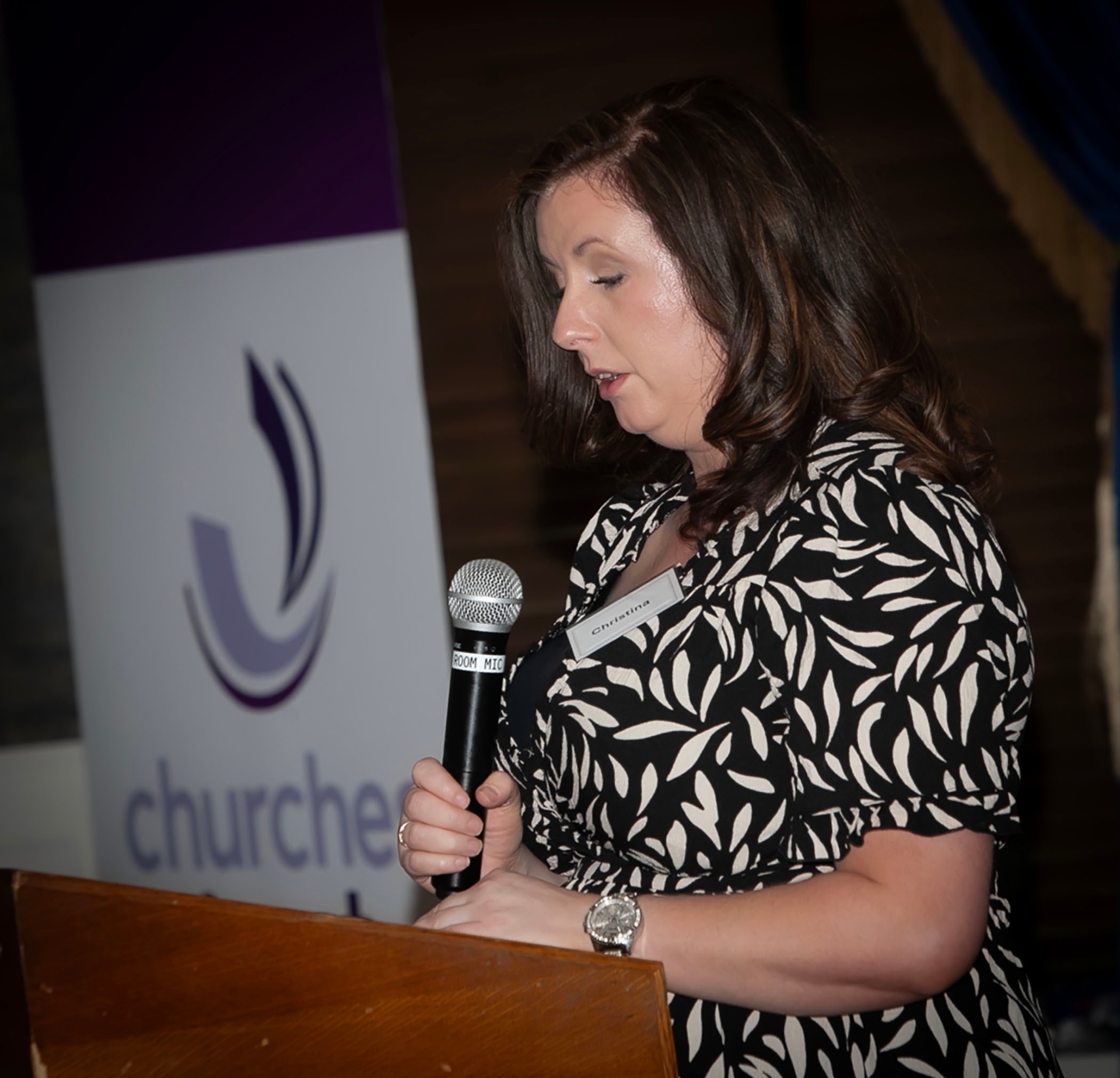 Christina McNickle addressing the attendance at Thursday's Churches Trust Trace-To-Transform conference.