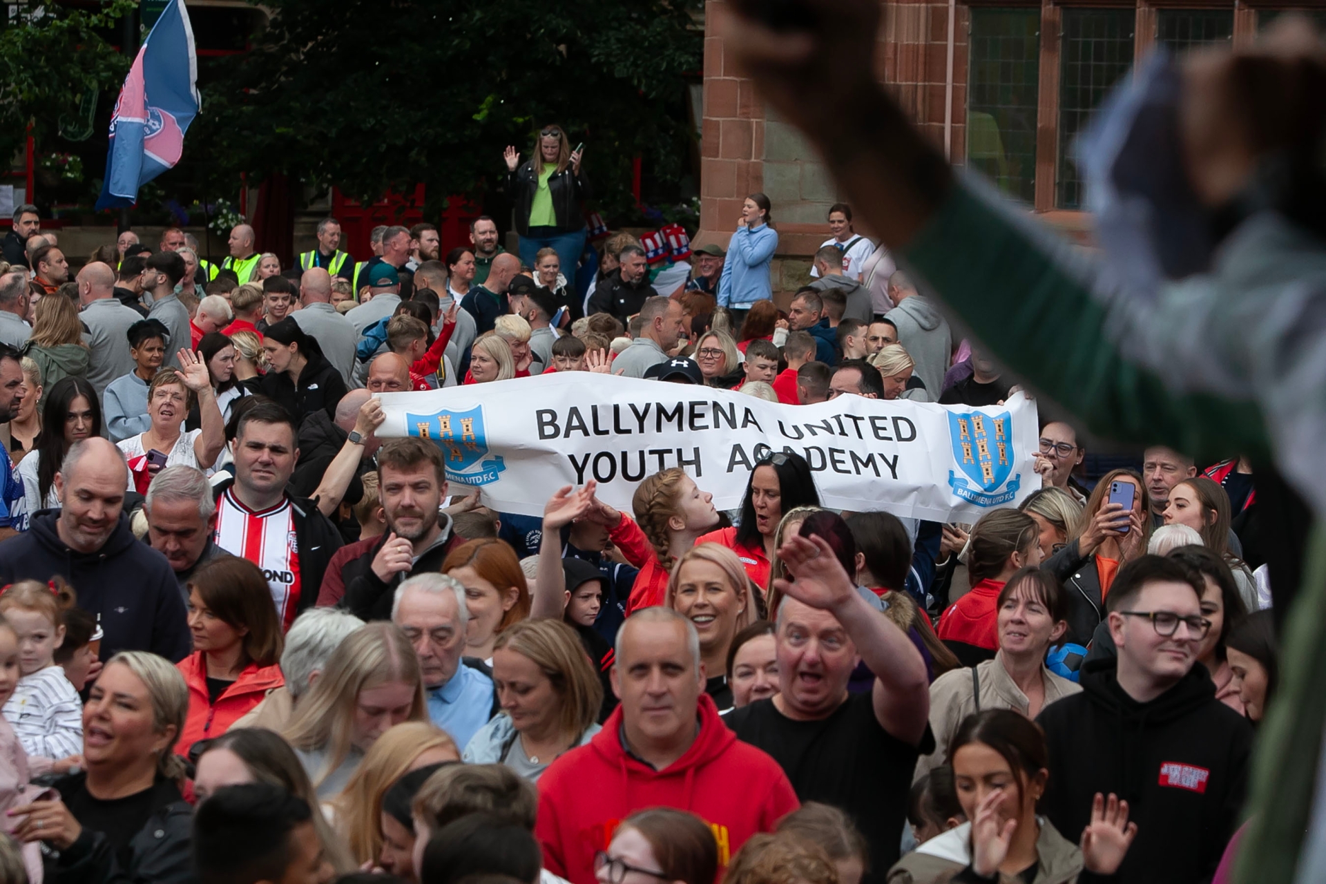 Some of the clubs represented in Guildhall Square during Monday's Foyle Cup parade. (Photos: Jim McCafferty Photography)