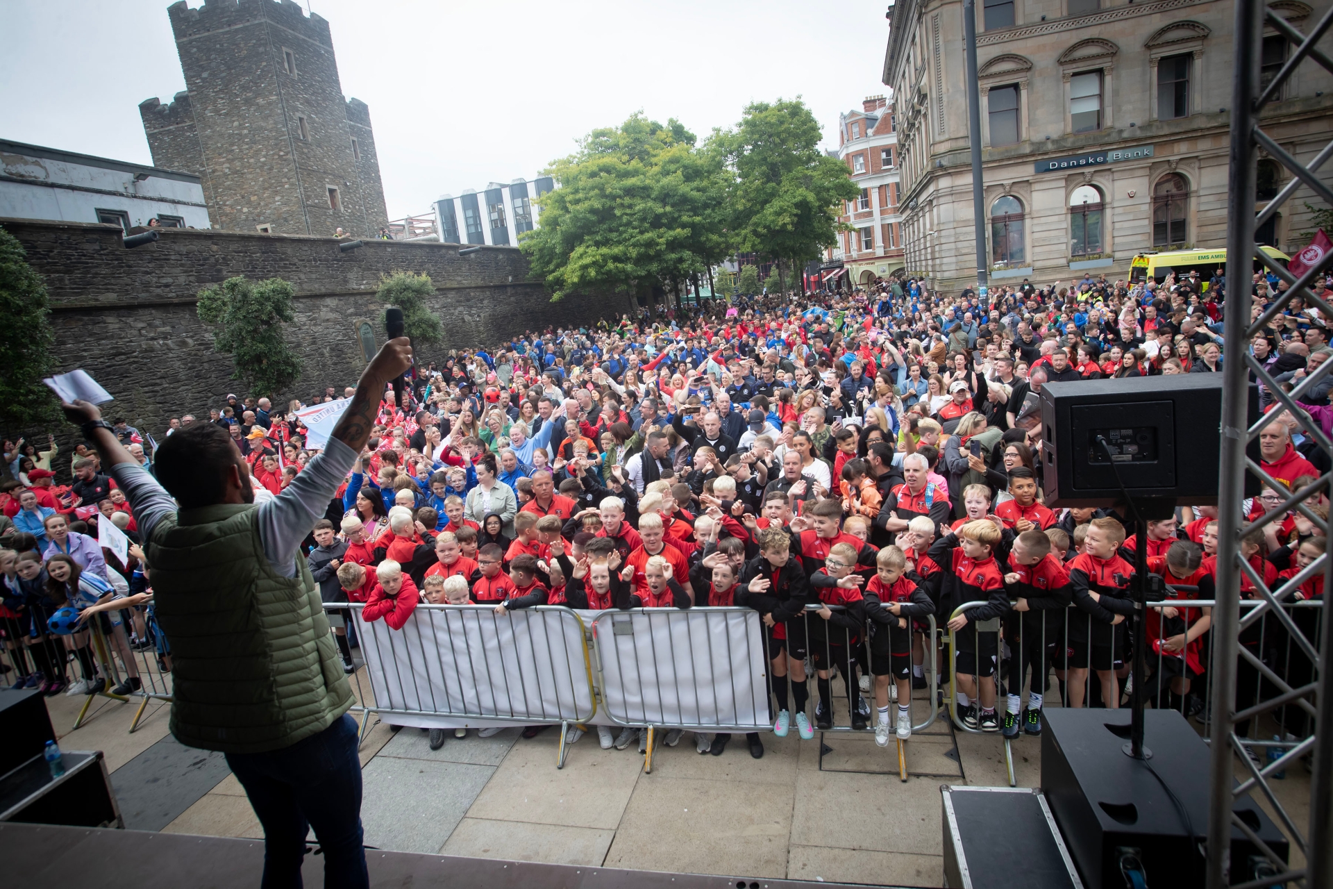SEA OF COLOUR!. . . . .A massive sea of colour as the O'Neills Foyle Cup Parade 2025 makes its way into Guildhall Square, Derry. (Photos: Jim McCafferty Photography)