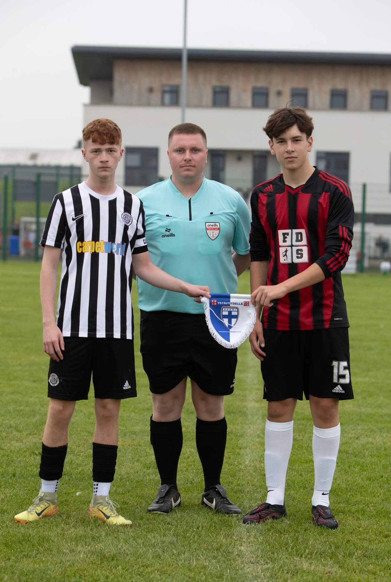 Referee and captains of St. Oliver Plunkett and FDS Norway prior to their fixture.