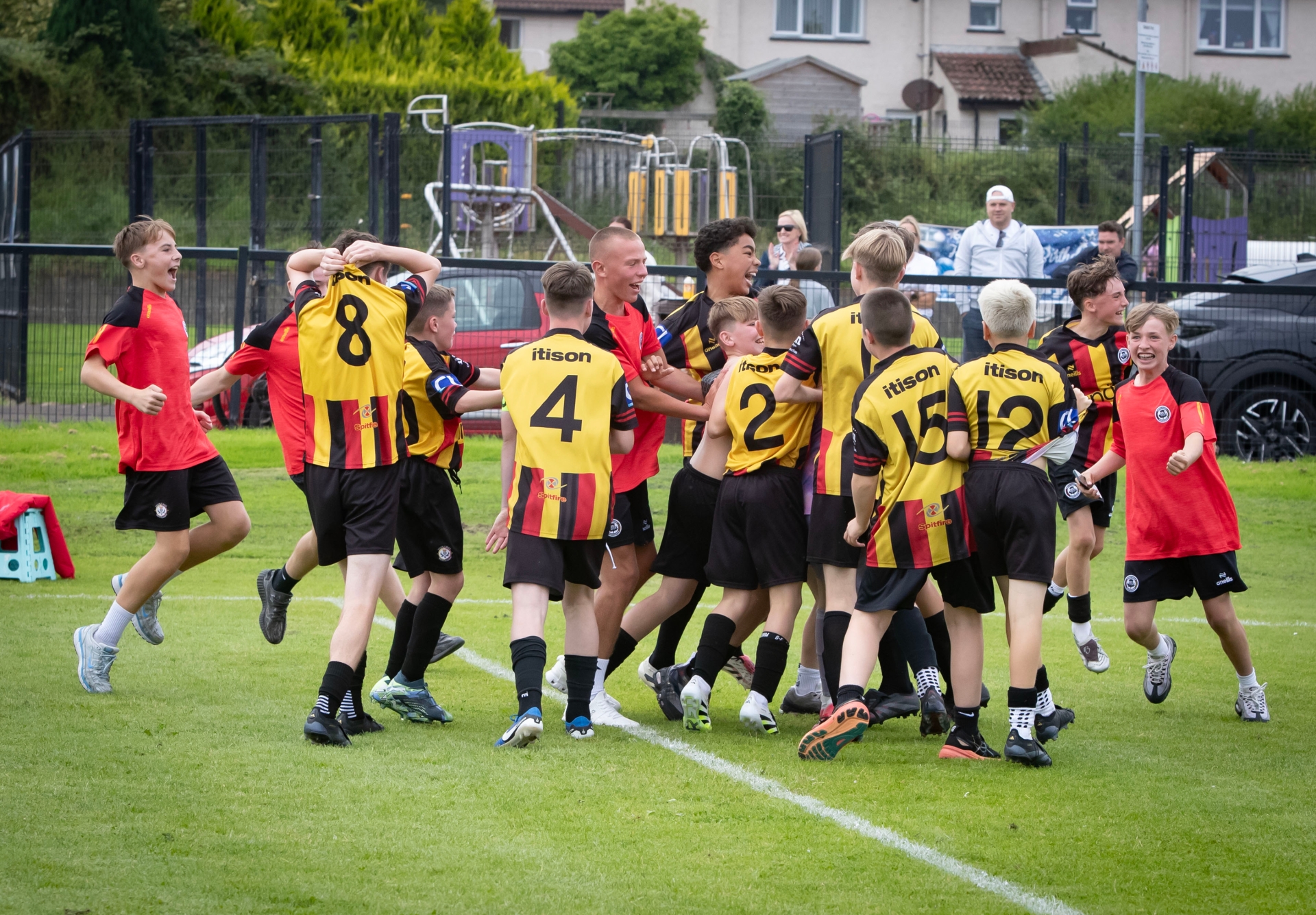 Partick celebrate after their penalty success in Thursday's Foyle Cup u-15 quarter-final game between Foyle Harps.