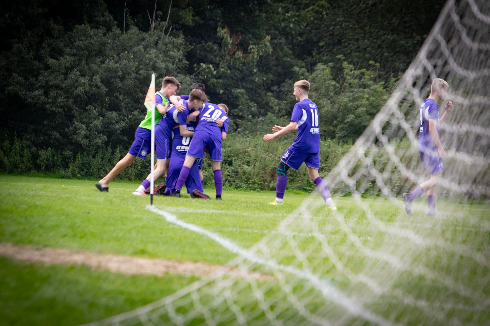 East End (Coleraine) players celebrate their sides equaliser in Thursday's Foyle Cup u-15 Shield quarter-final game against Phoenix Athletic to bring the tie to penalties.