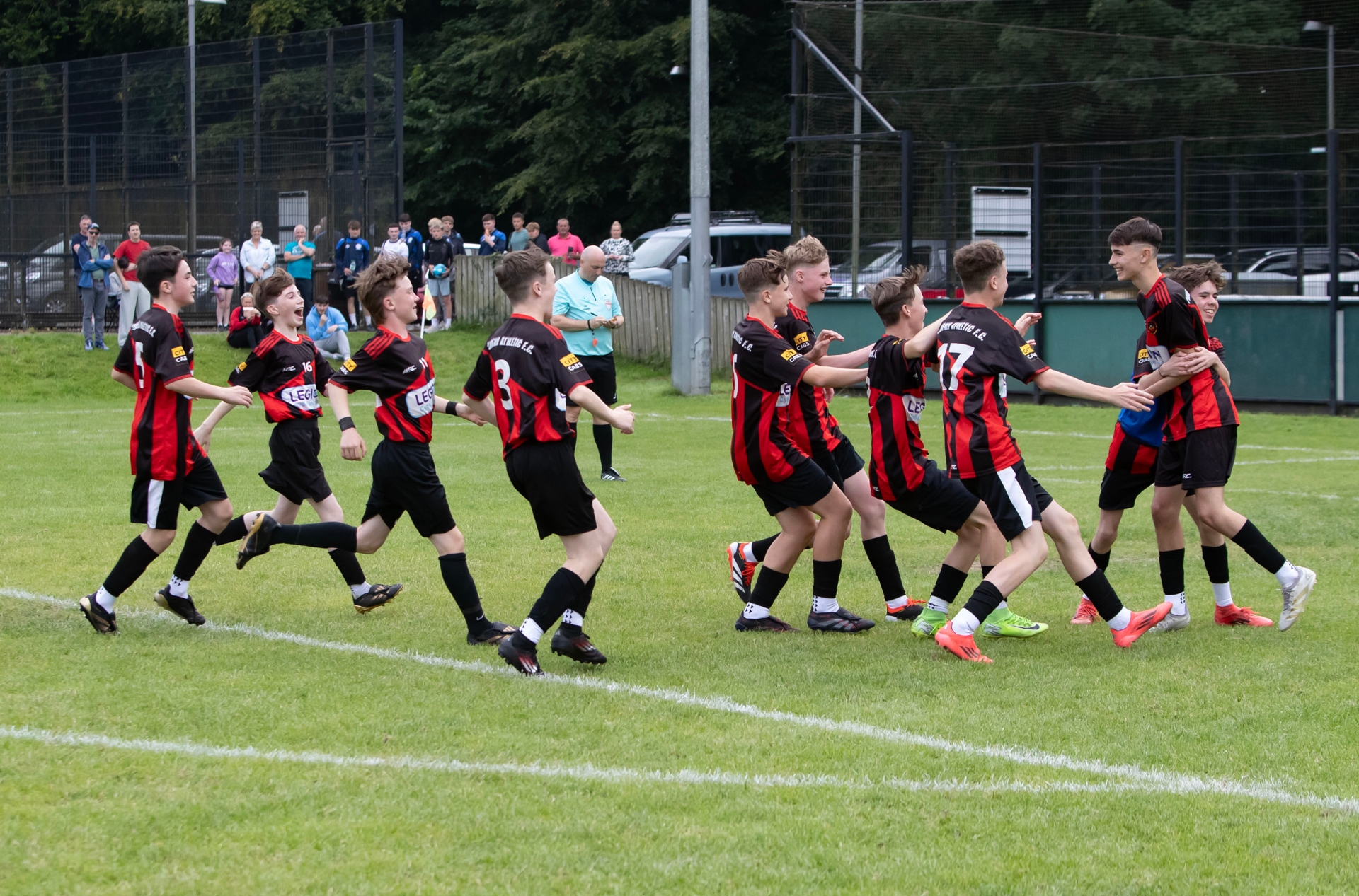 Phoenix Athletic players celebrate their victory in Thursday's Foyle Cup u-15 Shield quarter-final game against East End (Coleraine) at St. Columb's Park, Derry. (Photos: Jim McCafferty Photography)