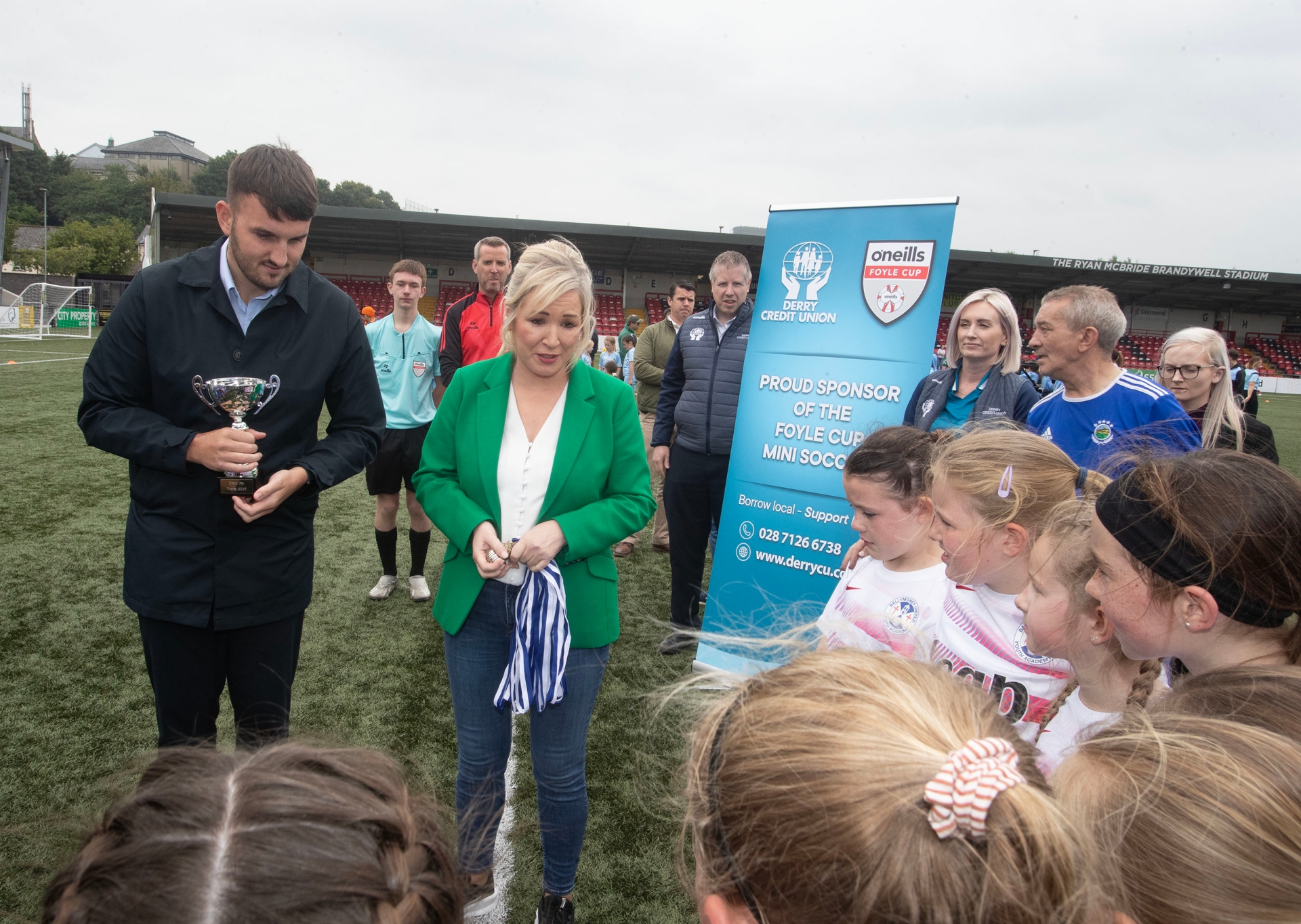 First Minister Michelle O’Neill was in attendance at Brandywell to show her support for the Foyle Cup tournament