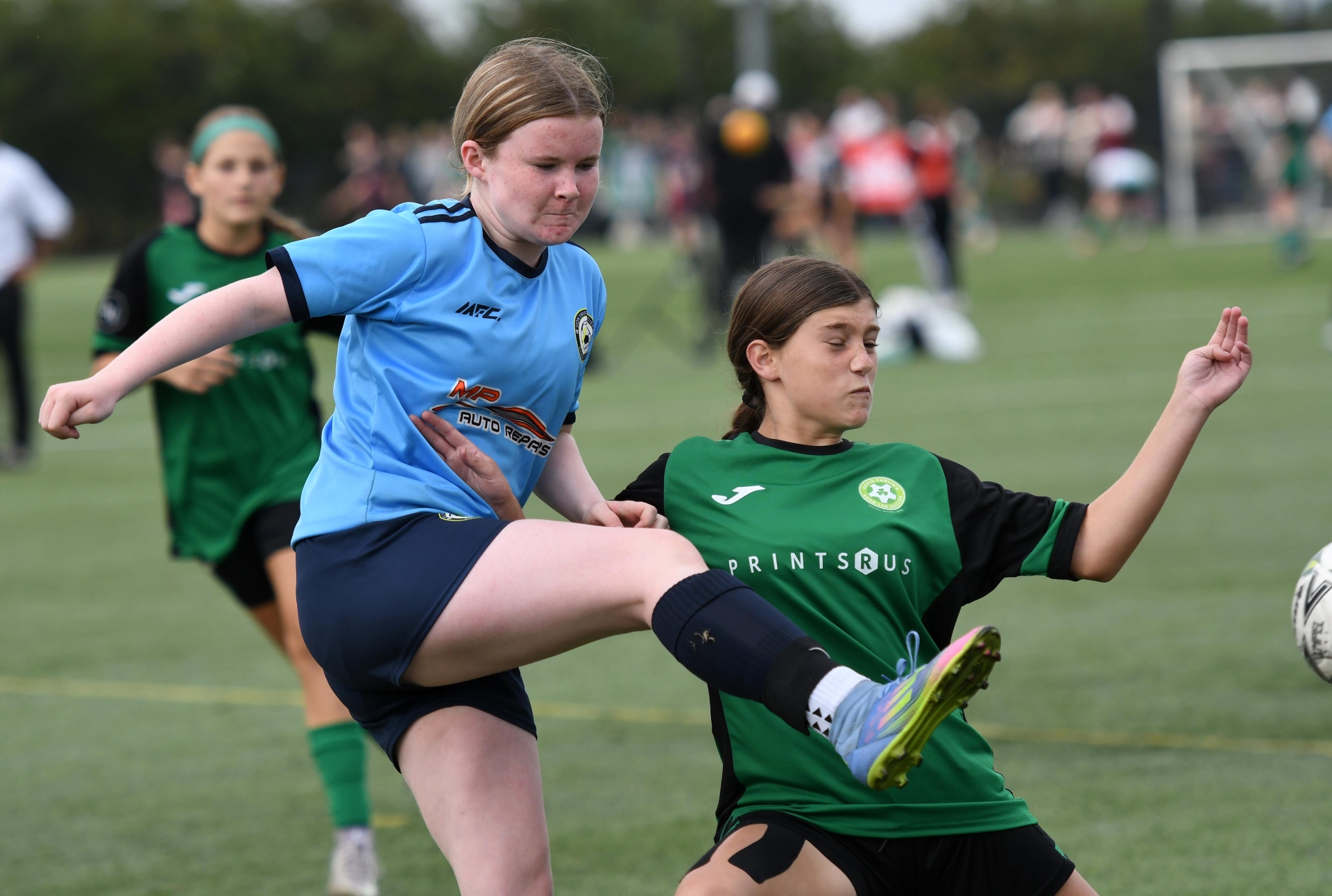 Abbie McGill, Sion Swifts Flame, and Ellie Shelton, Good Lad Soccer, clash at the Vale Centre.