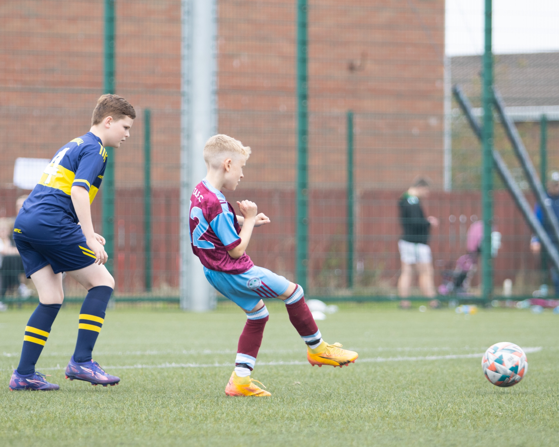 Players get underway at the kick-off during Thursday’s Foyle Cup Under 10’s group game between Don Bosco’s FC and Tummery Athletic FC.