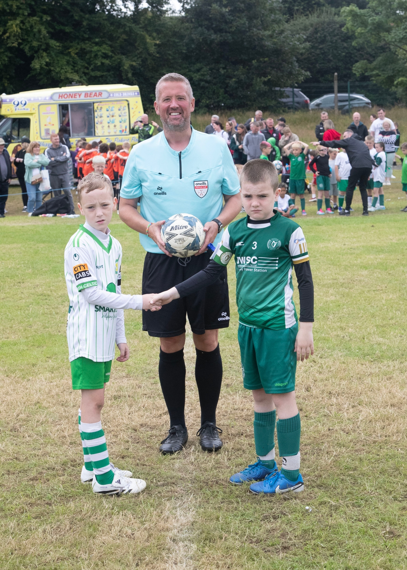 Captains shake hands before game kick-off.
