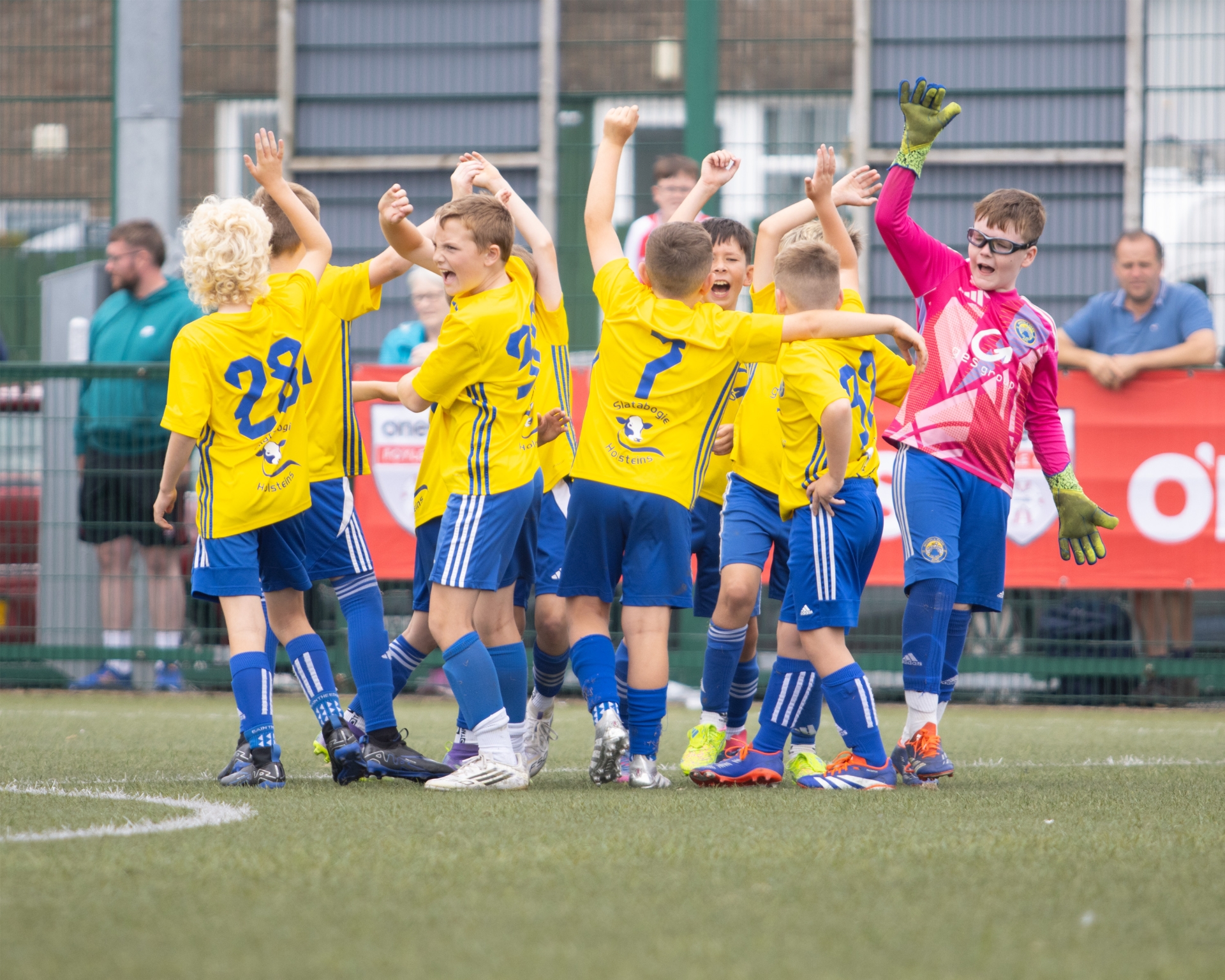A spirited team huddle as Moyola Park AFC gear up for their Foyle Cup Under 10’s group clash with Sion Swifts FC.