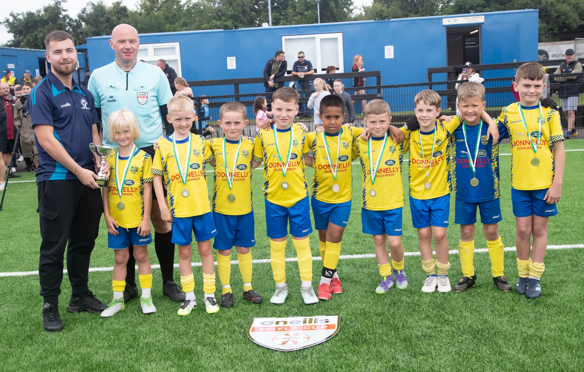 U-9 WINNERS. . . Dungannon Swifts receiving the Foyle Cup u-9 trophy on Friday at Lisneal College after defeating Crusaders in the final. (Photos: Jim McCafferty Photography)