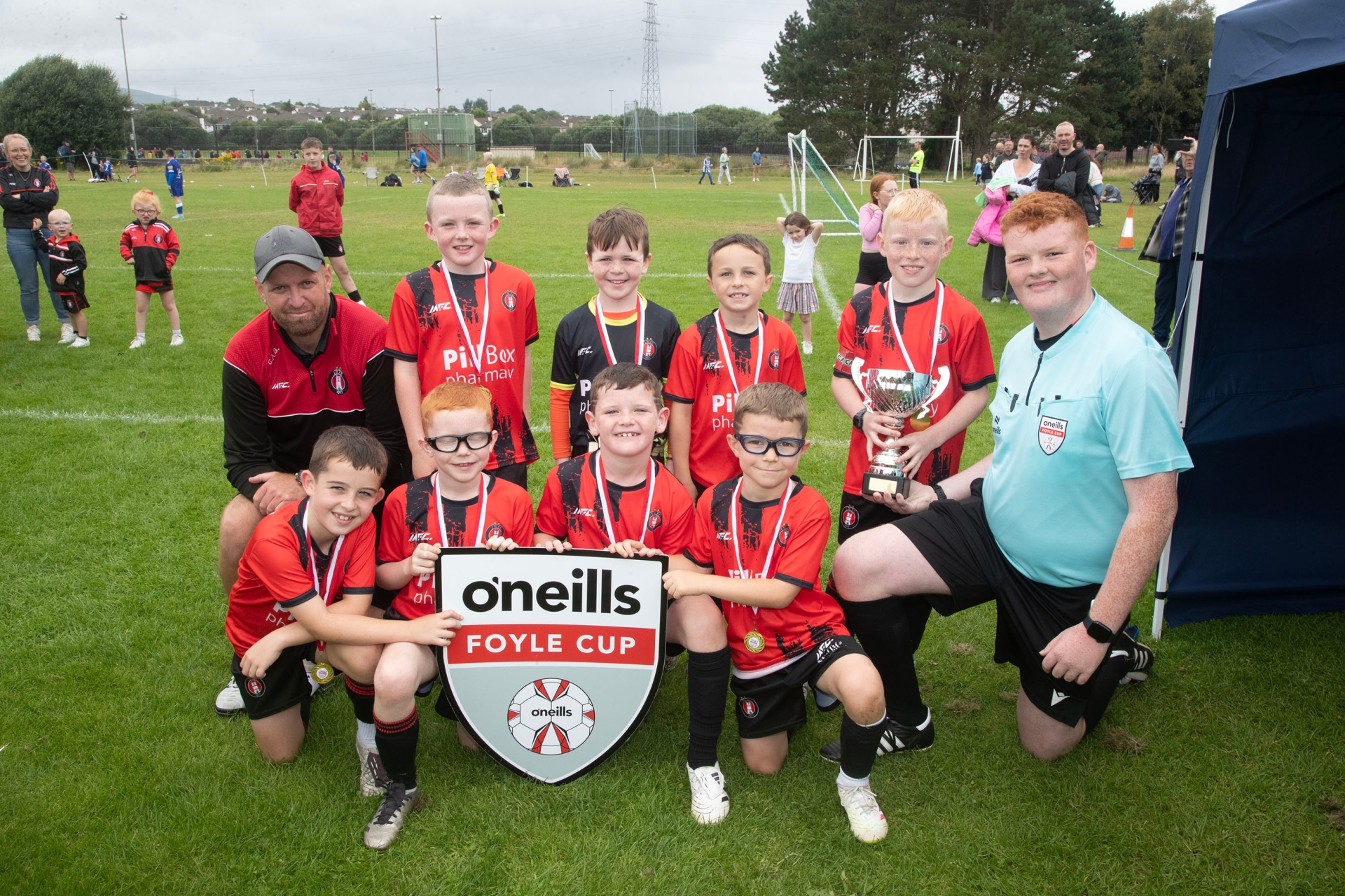 FOYLE CUP SHIELD FINAL. . . .Irvinestown Wanderers - winners of the 2025 Foyle Cup under-9 Shield at Templemore Sports Complex, Derry.