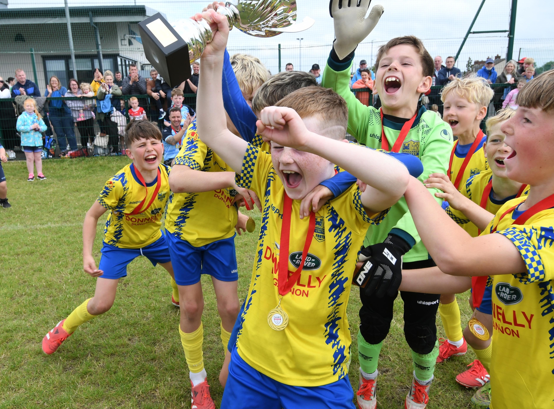The Dungannon United Youth's celebrate after lifting the O'Neills Foyle Cup Under-9's Cup at the Waterside Shared Village. (Photos: Keith Moore)