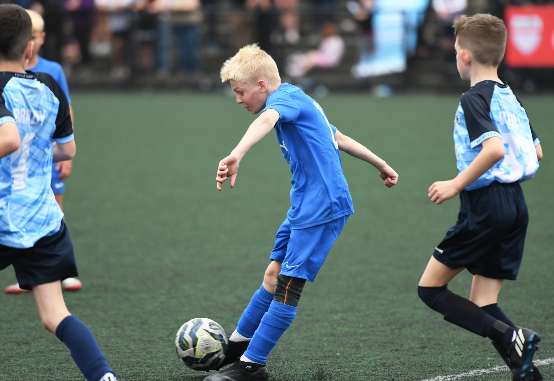 Zac Fulton, Ballinamallard United under-11's fires in a shot at goal.