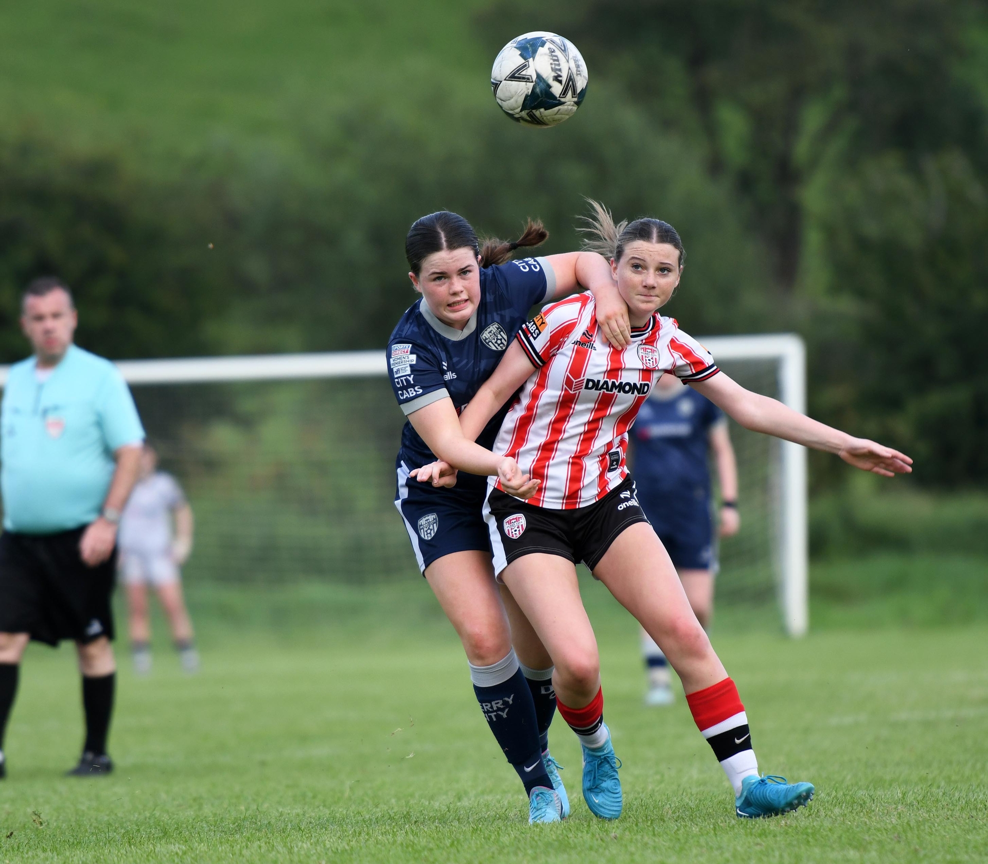Sarah Colhoun, Derry City Colts, and Sophie McLaughlin, Derry City under-17's tussle for the ball.