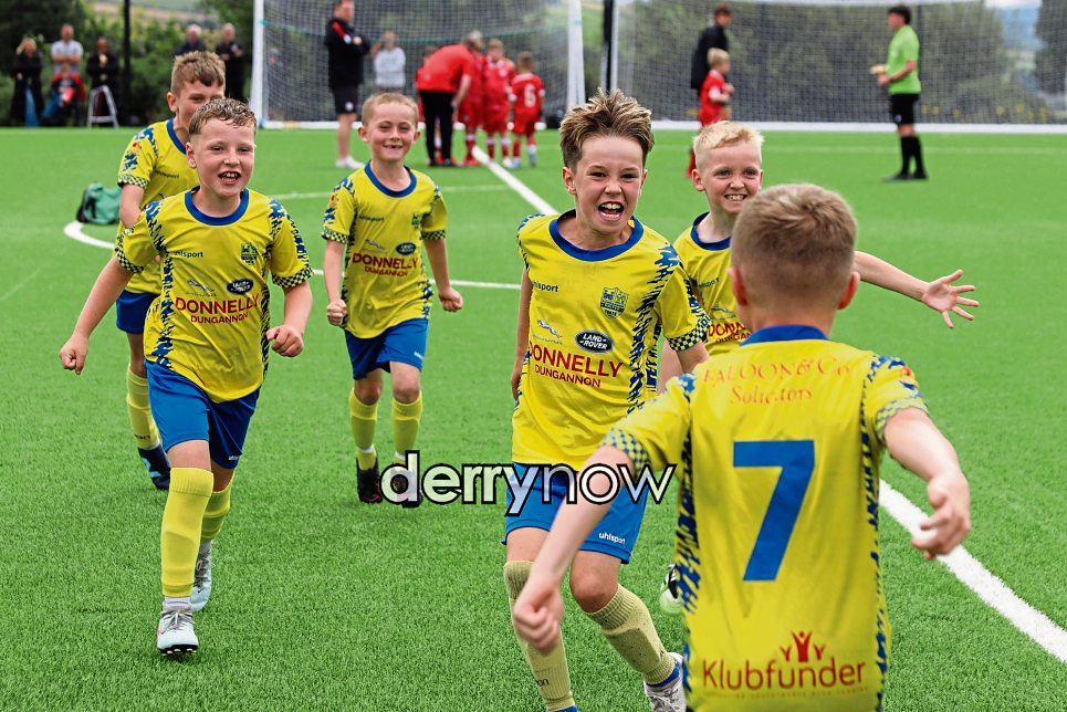 Dungannon players celebrating winning the Foyle Cup U8 beating Crusaders in the final at Lisneal. (Photos - Deirdre Heaney, nwpresspics)