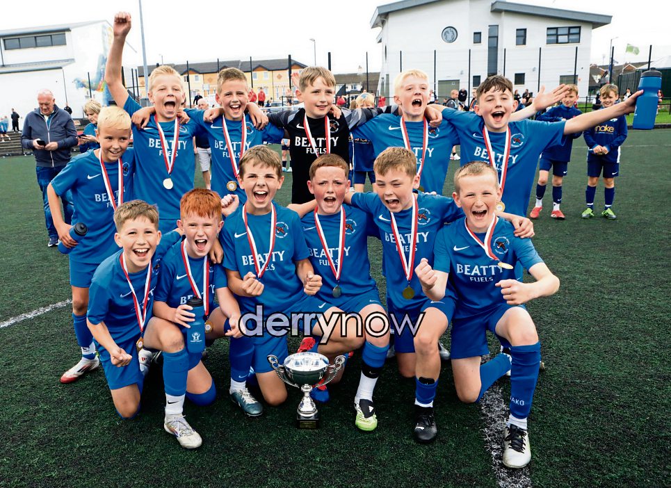Ballinamallard players celebrate winning the Foyle Cup U11 final.