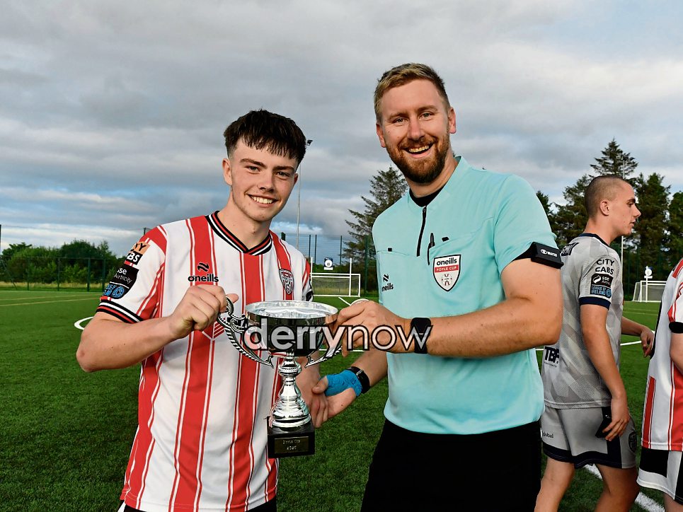 Derry City captain is presented with the Under 17 Foyle Cup.