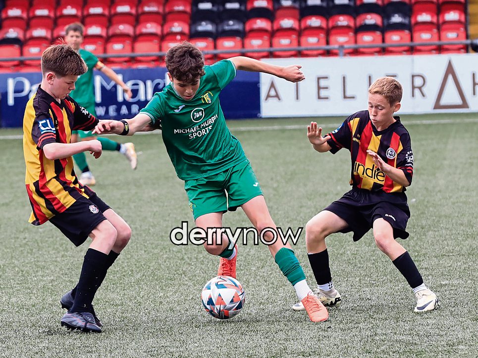 Donegal v Patrick Thistle players battle it out for possession in the Foyle Cup U14 final at the Ryan McBride Brandywell Stadium. (Photos - Tom Heaney, nwpresspics)