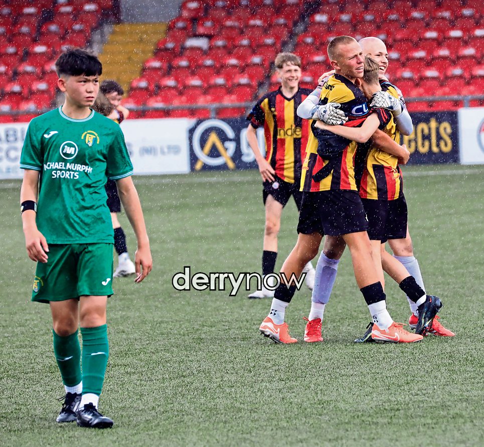Patrick Thistle celebrating winning the Foyle Cup U14 Final.