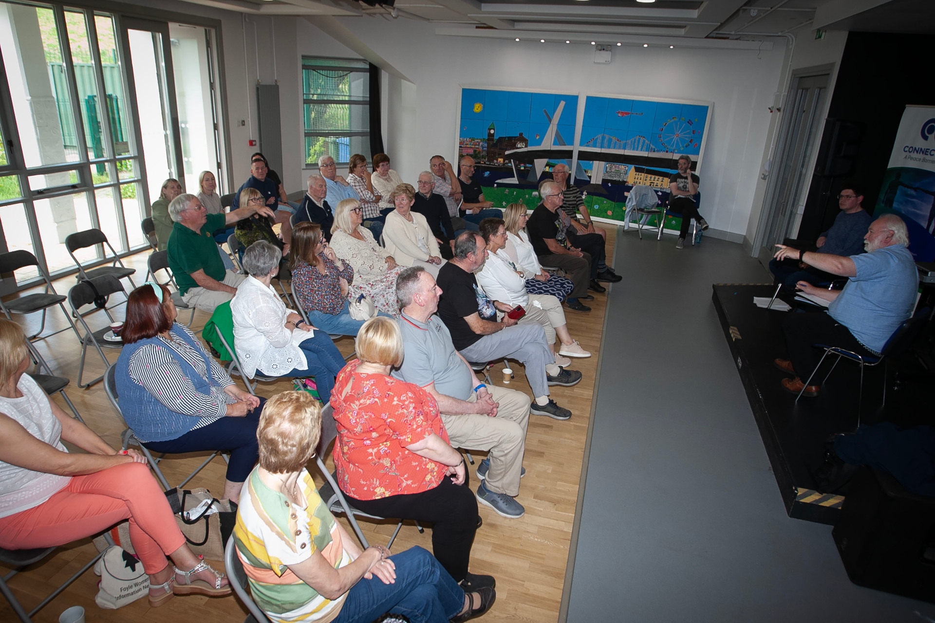 DID YE HEAR. . . . . . . Chair Pat McArt letting a member of the audience make a point to Andrew Lynch, Education Outreach Officer, Londonderry Bands Forum, during Monday's Gasyard’s ‘Did Ye Hear About?’ Conversations Series involving the Londonderry Bands Forum. (Photos: Jim McCafferty Photography)