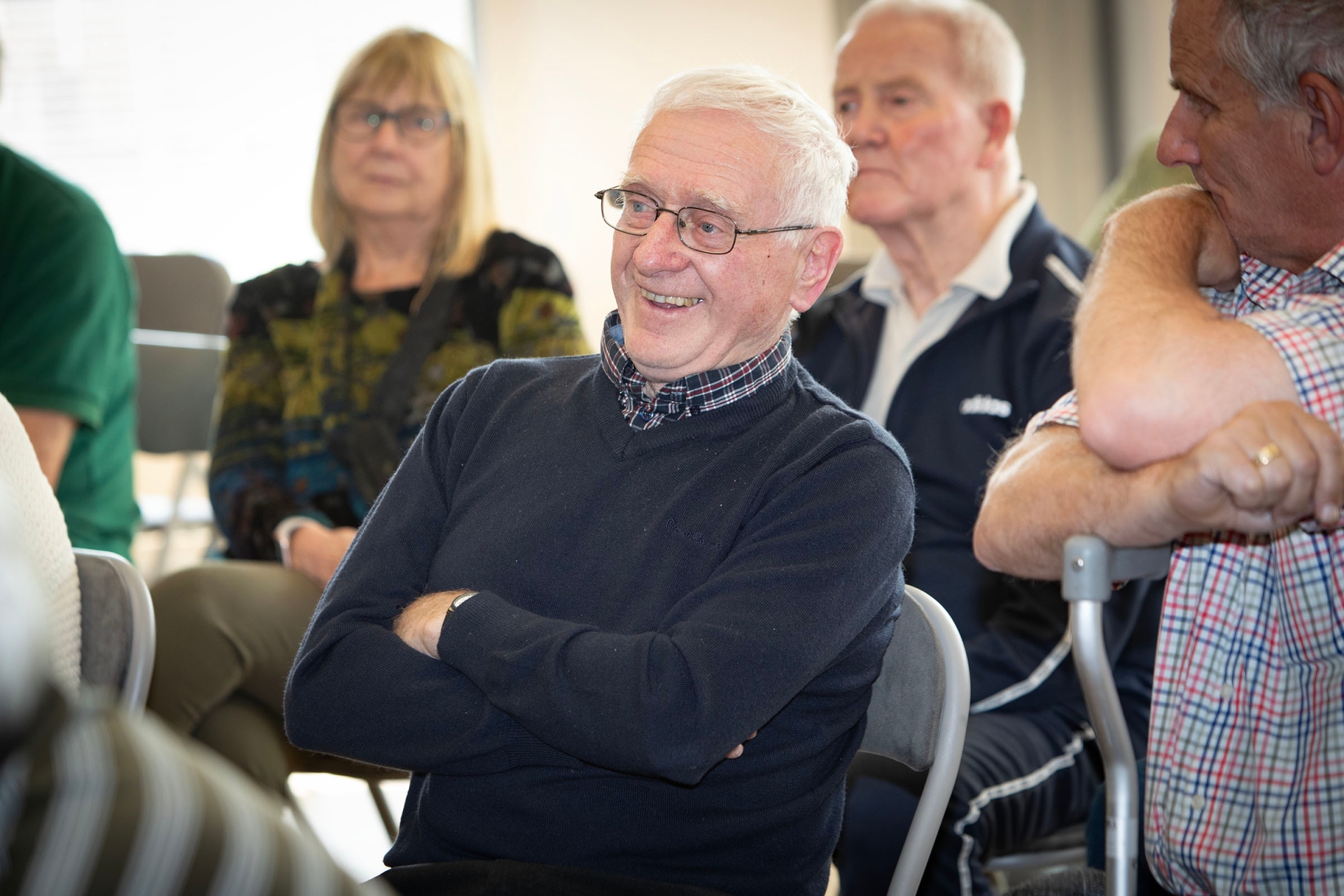 A member of the audience shares a joke with the Bands Forum's Andrew Lynch.