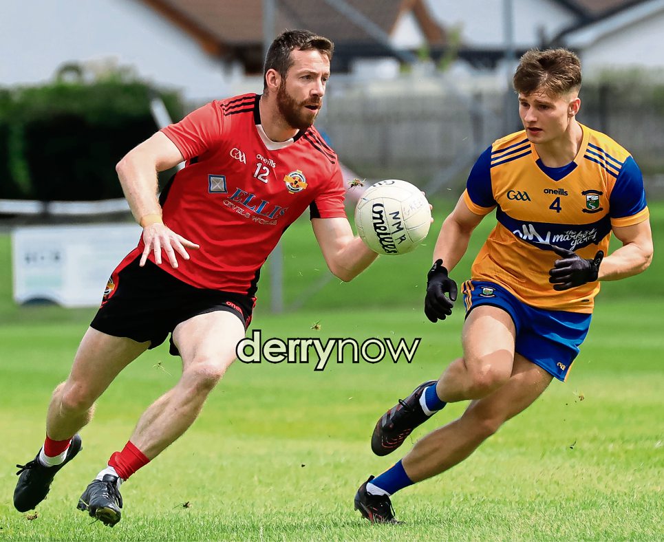 St Oliver Plunkett’s Greenlough James McAleese, Wolfhounds Darragh Deehan. (Photos - Tom Heaney, nwpresspics)