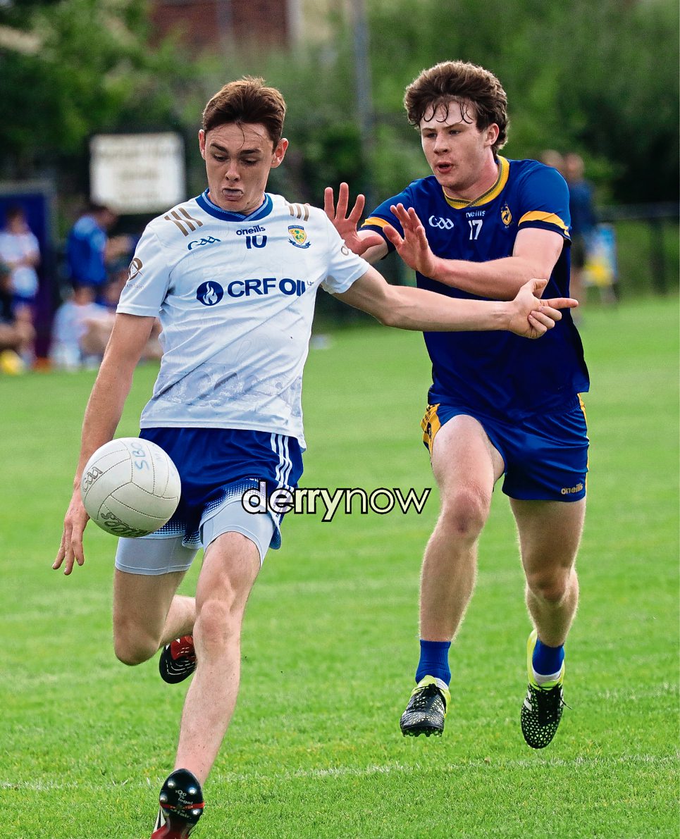 Ballinderry Jack Bell on his heels Steelstown Brian Ogs Ronan Canavan. (Photos - Tom Heaney, nwpresspics)