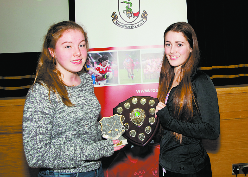 U14 Camogie Player of the Year Orla McEvoy with Megan Kerr