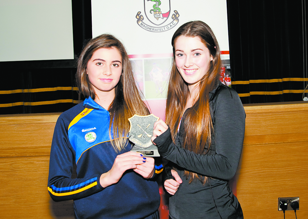 U12 Camogie Most Improved Player of the Year Clara Devlin with Megan Kerr