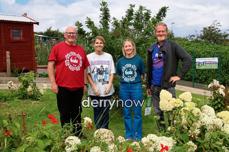 Kevin Campbell, Environment Gardener, Sinead Bradley, Volunteer, Tina Doolin, Development Worker and Phil Ruddock, Environmental Gardener pictured at the Harvest BBQ held in Ballymagowan Allotments. (Photos - Deirdre Heaney, nwpresspics)