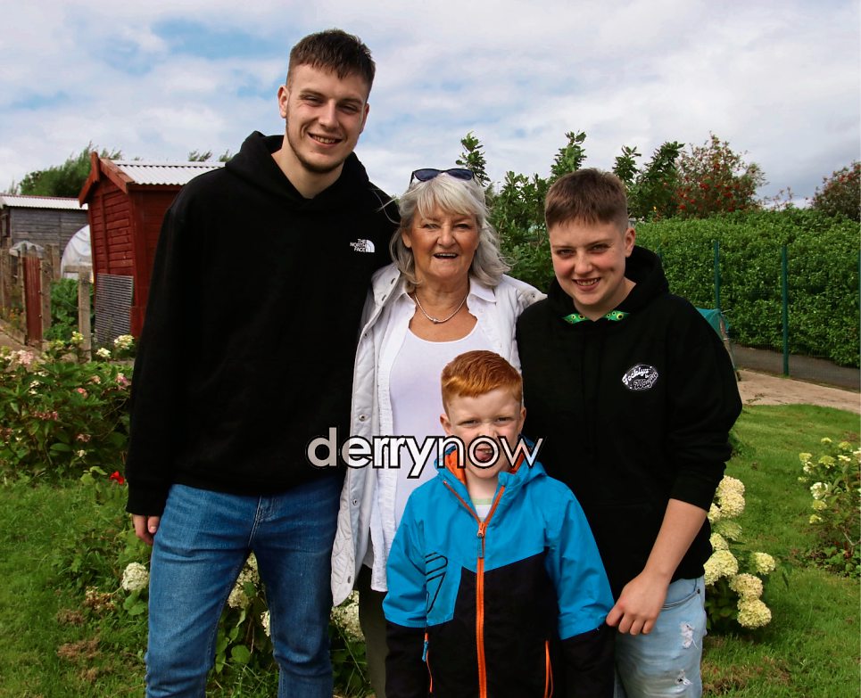 Margaret McKeever pictured with her grandchildren Ryan, Shawn and Torin at the Ballymagowan Allotment Harvest BBQ. (Photo - Deirdre Heaney, nwpresspics)