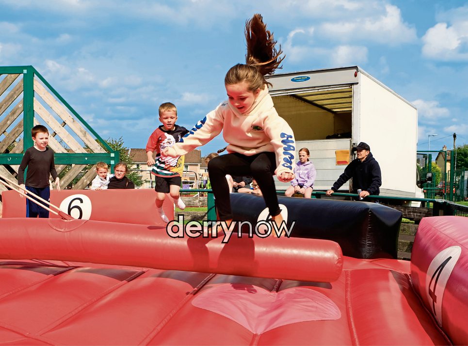 Children jumping high over the “sweeper”.