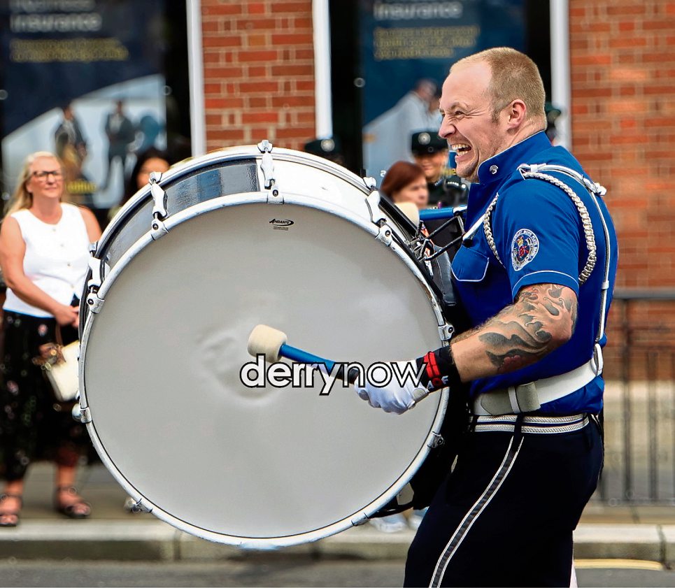 A band member beating the drum at the Relief of Derry Apprentice Boys' March (Photos - Tom Heaney, nwpresspics)