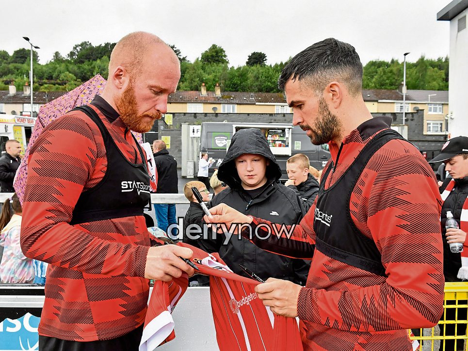 Liam Boyce and Michael Duffy sign autographs for fans. (Photos – nwpresspics)
