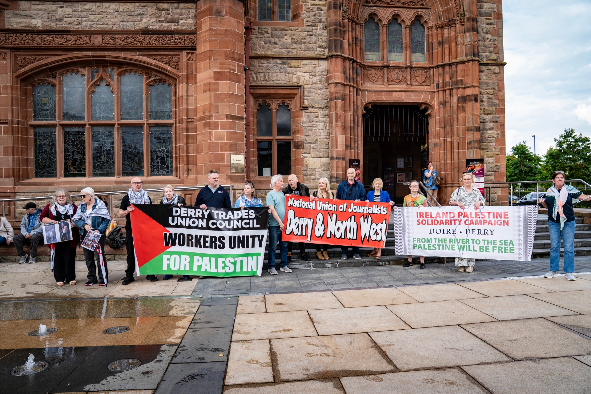 The Derry & Northwest branch of the National Union of Journalists gathered at Guildhall Square in Derry on August 11 2025 to honour colleagues in Gaza killed in an Israeli airstrike. (Photos: Aodhan Roberts)