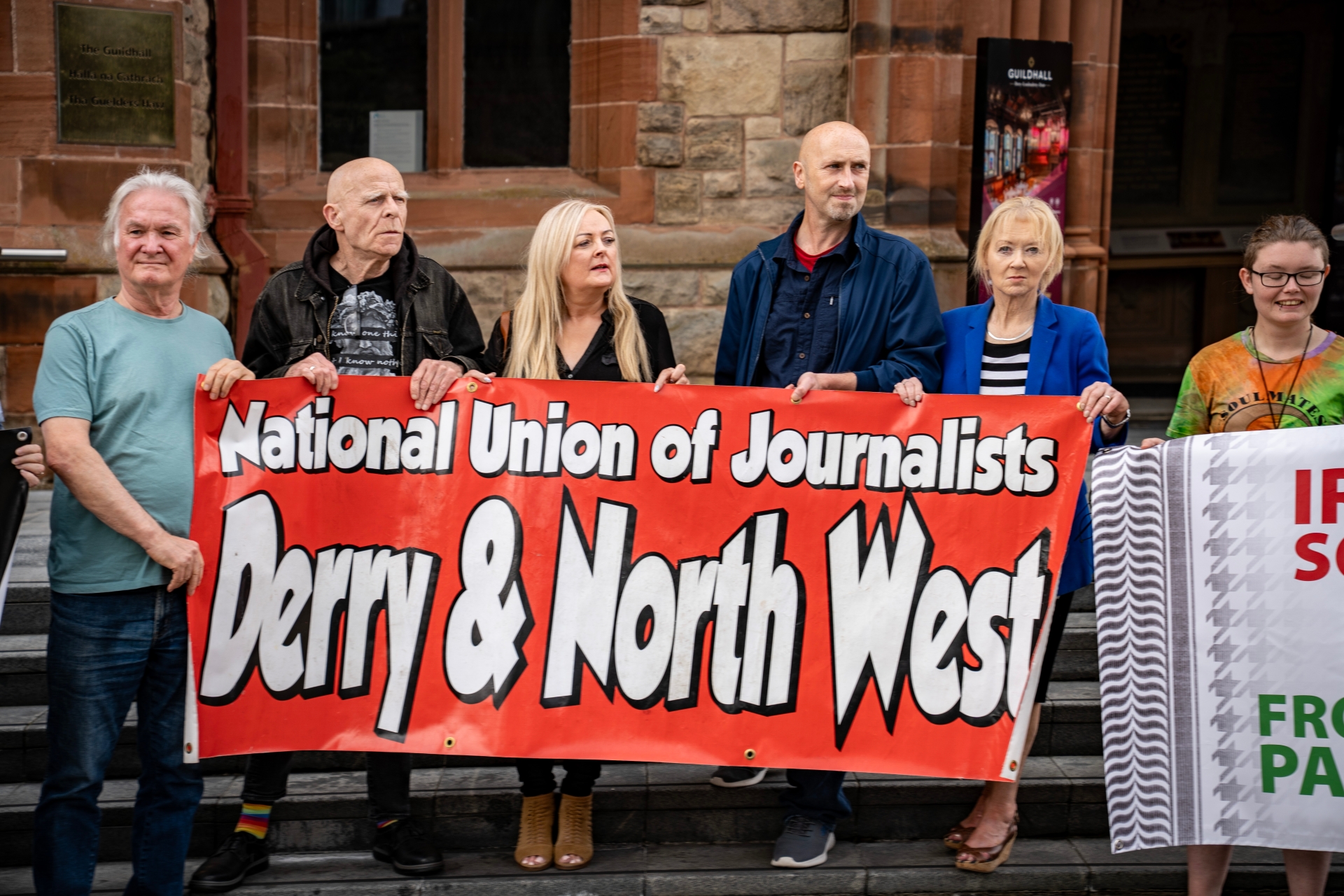 Members of the Derry & Northwest branch of the National Union of Journalists gathered at Guildhall Square. (Photos: Aodhan Roberts)