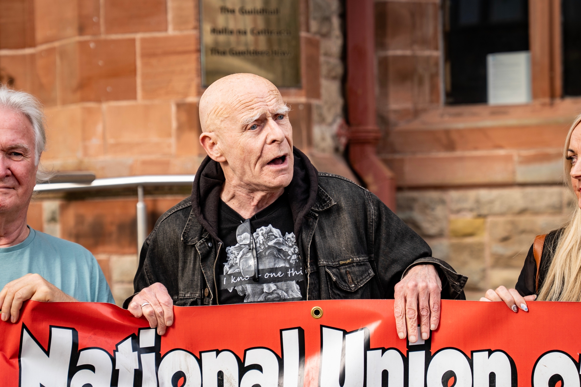 Eamonn McCann addresses those gathered at Guildhall Square. (Photos: Aodhan Roberts)