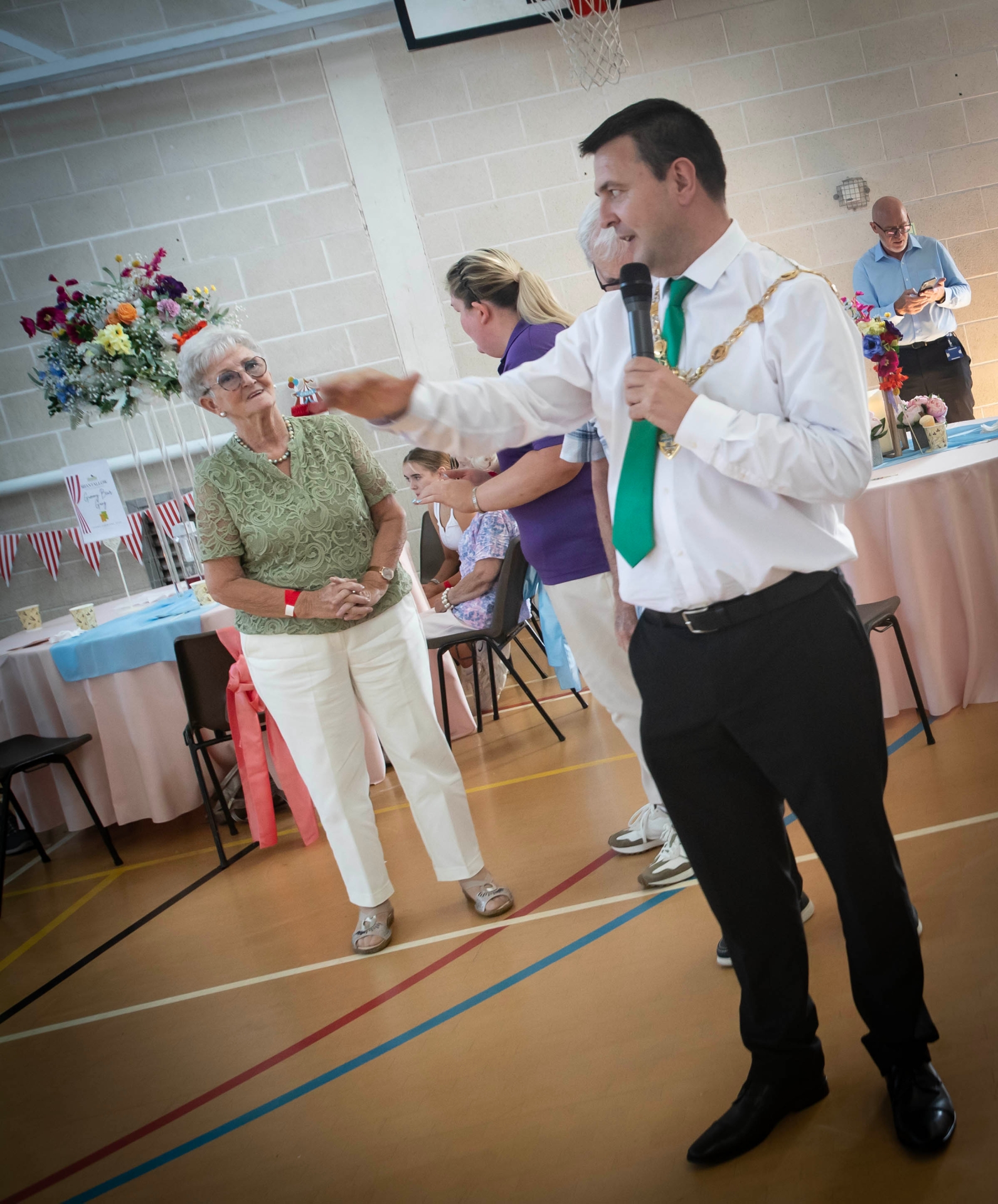 The Mayor of Derry City and Strabane District Council, Ruairi McHugh making special praise to Sinead Devine and her DEEDS staff after the success of their Second Phase during Tuesday's Tea Party in Creggan.
