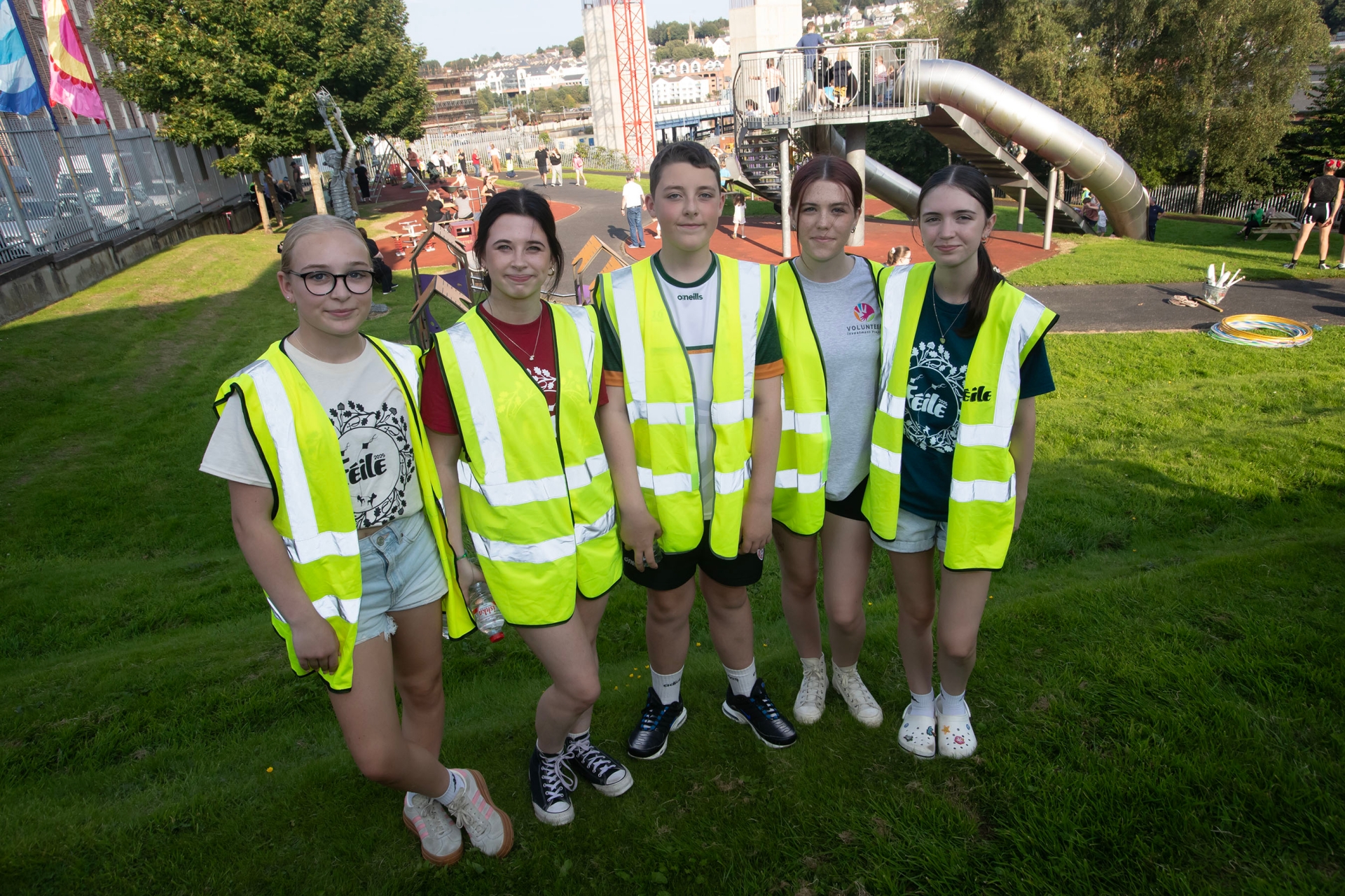 A number of the young Feile volunteers pictured at Abercorn Park on Tuesday to help supervise The Tumble Circus in The Greatest Show. (Photos: Jim McCafferty Photography)