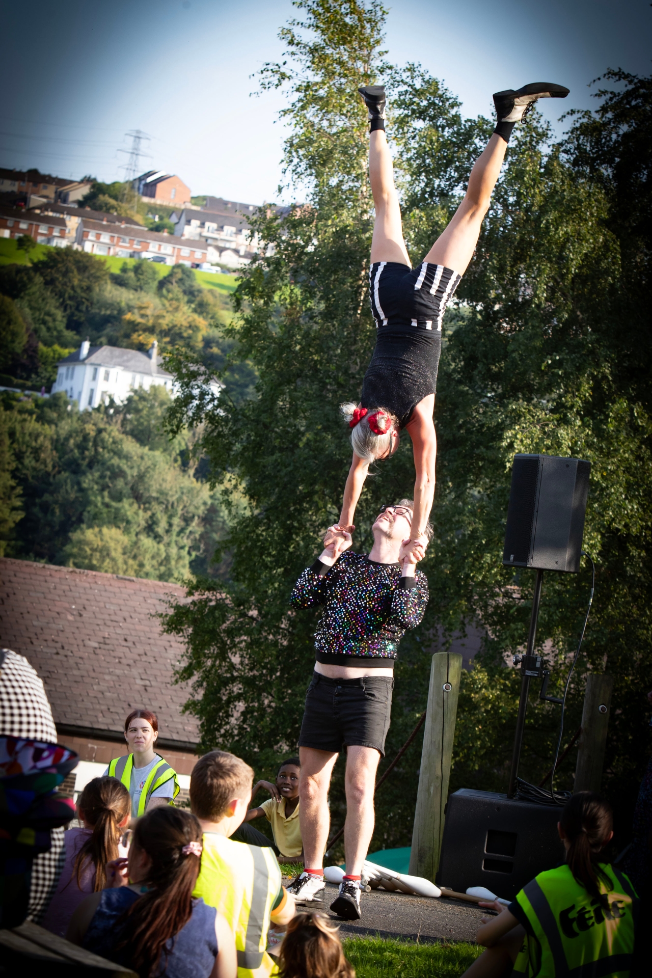 The Tumble Circus performing at Abercorn Park.