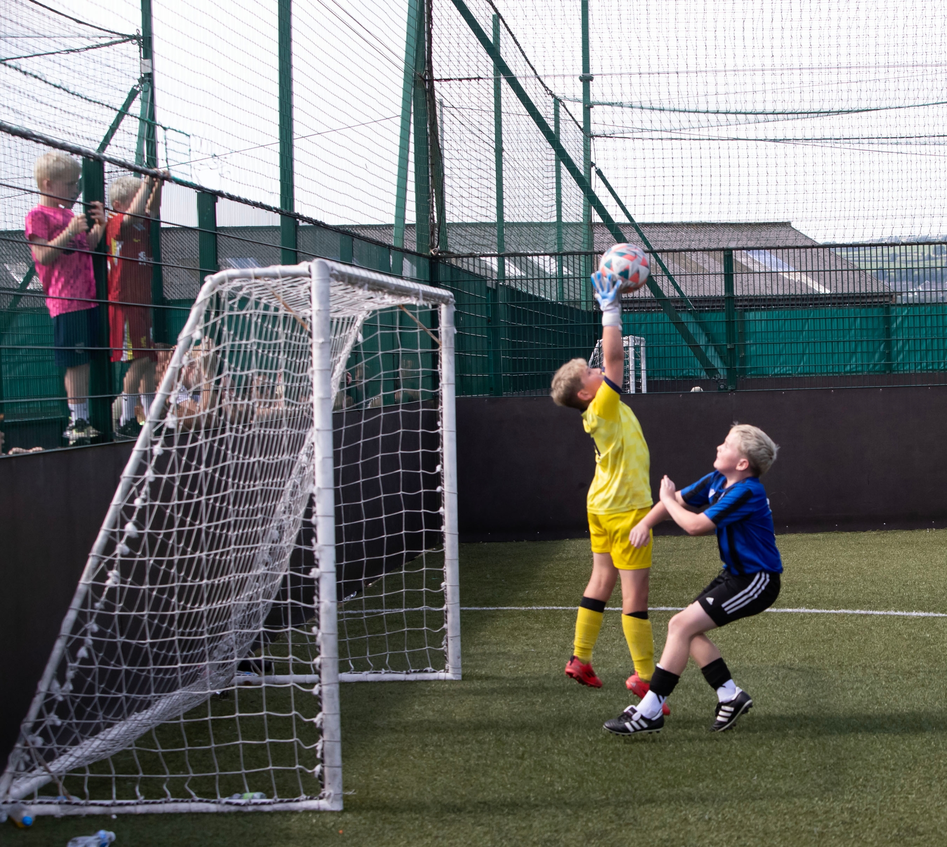 Action from the Padraig Barton Memorial Cup final between Don Boscos and Oxford United at Bay Road on Tuesday morning. (Photos: Jim McCafferty Photography)