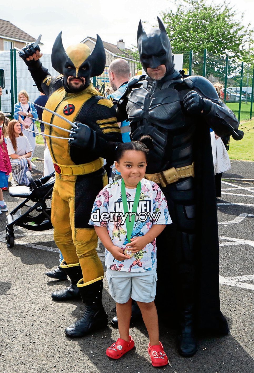 Dairinn with his Super Heroes "Wolverine" and "Batman".