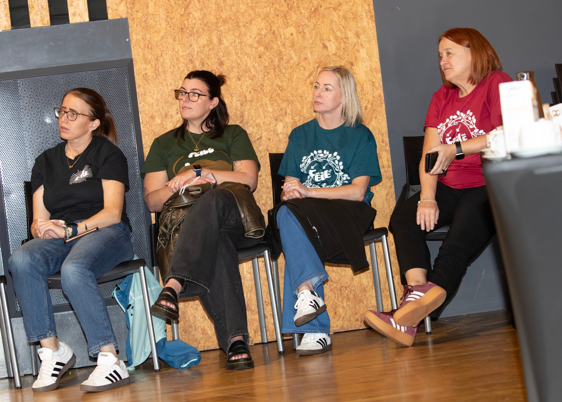 Some Feile volunteers look on Friday at Cultúrlann Uí Chanáin.