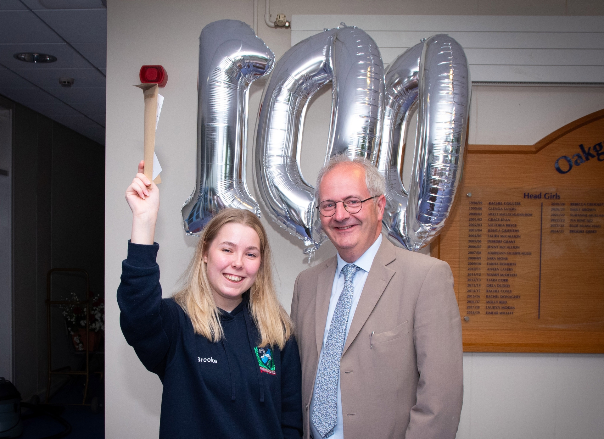 Oakgrove Integrated College Student Brooke Deery with Principal John Harkin on A Level Results Day 2025. (Photos: Jim McCafferty Photography)